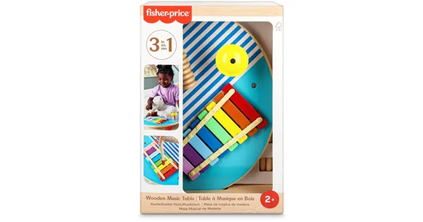 Der Holz-Musiktisch von Fisher-Price vereint 3 Percussion-Instrumente zu einem lustigen Musikspielzeug für Kleinkinder. Kinder können mit den Hämmern zum Spielen des Xylophons, des Beckens und des Guiros ihren Rhythmus finden und ihre Feinmotorik trainieren. Dieses aus Holz aus nachhaltiger, FSC-zertifizierter Waldwirtschaft hergestellte Spielzeug regt die Kreativität an und führt Kinder auf lustige, spannende Weise an Musik heran.