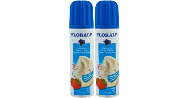 Halbrahm ohne Zucker Der Floralp Schlagrahm Halbrahm Dose ohne Zuckerzusatz 30% Milchfett UHT in der praktischen Dose überzeugt mit einem Fettgehalt von 30% und kommt ohne Zuckerzusatz aus. Ob als Begleiter zu Desserts oder für die Verfeinerung von Speisen – dieser Rahm bietet vielseitige Einsatzmöglichkeiten. Dank der UHT-Behandlung ist das Produkt lange haltbar und stets griffbereit. – Zutaten: RAHM, MAGERMILCH, MILCHEIWEISS, Emulgator (Mono- und Diglyceride von Speisefettsäuren), Verdickungsmittel (Carrageen), natürliche Aromen, Treibgas (Distickstoffoxid). Zutaten: RAHM, MAGERMILCH, MILCHEIWEISS, Emulgator (Mono- und Diglyceride von Speisefettsäuren), Verdickungsmittel (Carrageen), natürliche Aromen, Treibgas (Distickstoffoxid).