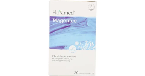 Pflanzliches Arzneimittel, Magentee Floramed Magentee 20er-Packung SM E – Zutaten: Schafgarbenkraut (30%), Pomeranzenschalen (20%), Tausendgüldenkraut (20%), Anis (5%), Basilikumkraut (5%),...