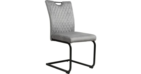 Der Freischwingerstuhl Vigo überzeugt mit seiner XXL-Grösse und seinem edlen Erscheinungsbild. Seine 4 cm dicke Federkern-Polsterung verspricht hohen Sitzkomfort. Der Esszimmerstuhl verfügt über einen praktischen Griff in der Rückenlehne, um das Umherschieben zu vereinfachen. Der schöne Stoffbezug aus einem Leinengemisch in grauer Farbe ist im vorderen Rücken und an der Seite der Sitzfläche mit einer wunderschönen Diamantensteppung verziert. Das Gestell aus Metall sorgt für die nötige Stabilität, lässt dich leicht schwingen und verleiht dir so Leichtigkeit und Gemütlichkeit.