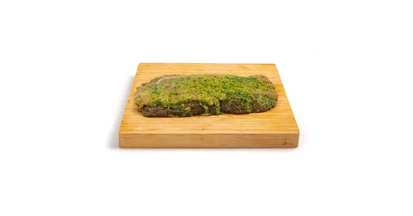 Fleischzubereitung aus Rind- und Schweinefleisch, mariniert – Zutaten: Rindfleisch 48% (Schweiz), Schweinefleisch 42% (Schweiz), Ölmarinade mit Bärlauch (pflanzliche Öle , Bärlauch 1,1%, Kochsalz...