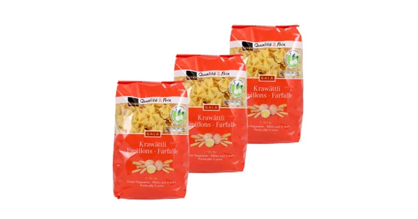 3-Eier-Teigwaren Die Gala 3-Eier Krawättli sind eine wohlschmeckende Beilage, ideal für verschiedenste Gerichte. Hergestellt aus hochwertigen Eiern, bietet dieses Produkt ein hervorragendes...