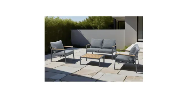 Gestalte deinen Outdoor-Bereich mit der Gartenlounge Calpe und dem passenden Beistelltisch stilvoll und einladend. Das pulverbeschichtete Metallgestell ist robust und witterungsbeständig und hält so jeder Laune der Natur stand. Die naturfarbenen Polywood-Ablagen sehen aus wie echtes Holz, benötigen aber keine aufwendige Pflege. Die anthrazitfarbenen Kissen aus Olefin-Stoff sind nicht nur ein optisches Highlight, sondern auch funktional: Sie sind UV-beständig und wasserabweisend und begleiten dich so durch den Sommer. Schenke deinen Abenden im Freien das gewisse Extra und nutze die mit Liebe zum Detail gestaltete Lounge für unvergessliche Momente. Geniesse mit deinen Liebsten die lauen Sommernächte.