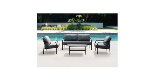 Entdecke pure Entspannung für deinen Garten mit der stilvollen Gartenlounge Hamm in Anthrazit. Diese elegante Garnitur verwandelt deinen Aussenbereich in eine wahre Wohlfühloase. Gefertigt aus pulverbeschichtetem Aluminium, bietet sie nicht nur moderne Optik, sondern auch Langlebigkeit. Die komfortablen Spun-Polyester Kissen mit Anti-Rutsch-Narbung laden dazu ein, die Seele baumeln zu lassen. Die Pflege ist einfach: Mit einem feuchten Tuch lassen sich die Möbel schnell reinigen und die waschbaren Kissenhüllen machen den Komfort perfekt. Sichere dir noch heute dieses prachtvolle Ensemble und gestalte deinen Garten zum neuen Lieblingsplatz!