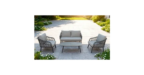 Stell dir vor, du sitzt an einem lauen Sommerabend in deiner stilvollen und komfortablen Gartenlounge Louis in Grau. Diese exklusive Lounge ist der perfekte Ort zum Entspannen und Geniessen. Sie ist aus korrosionsfreiem Aluminium gefertigt und mit robusten Kunststoffschnüren bespannt. Somit bietet sie nicht nur ein zeitloses Design, sondern ist auch wetterfest. Freue dich auf die weichen Kissen aus hochwertigem Olefin-Stoff. Sie sind UV-beständig, schnell trocknend und atmungsaktiv. Sie bieten dir den Komfort, den du im Freien verdienst. Egal, ob du alleine relaxen oder Freunde einladen möchtest, die Sitzgruppe bietet Platz und Stil.