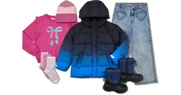 Mit Strumpfwaren sowie Tag- und Nachtwäsche (ohne Hit-Artikel), z.B. Kinder-Pufferjacke, blau, pro Stück, 31.47 statt 44.95, Angebot gilt nur vom 13.11. bis 16.11.2025, solange Vorrat.