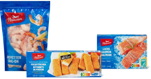 (ohne Sélection und Alnatura), tiefgekühlt, z.B. Pelican Fischstäbchen paniert, MSC, 450 g, 2.40 statt 3.–, 100 g = 0.53, Angebot gilt nur vom 19.3. bis 25.3.2026, solange Vorrat.