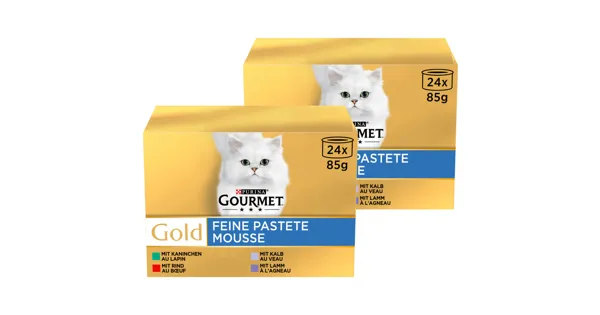 Alleinfuttermittel für ausgewachsene Katzen Um Ihrer Katze Abwechslung zu bieten, sind Sie immer auf der Suche nach vielfältigen Menüs, die Ihre Samtpfote geniessen wird. Deshalb hat GOURMET Gold - Feine Pastete - kreiert. Mit diesen köstlichen Rezepten können Sie den anspruchsvollen Gaumen Ihrer Katze mit einzigartigen Geschmackserlebnissen verwöhnen. Feine Pasteten mit Rind, Huhn, Lachs und anderen ausgewählten Zutaten wurden sorgfältig zubereitet, um Ihrer Katze eine delikate und zarte Überraschung zu bieten. Feine Pastete von GOURMET Gold – Verwöhnen Sie Ihre Katze mit einem zarten Genusserlebnis! Alle GOURMET Gold Sorten werden mit qualitativ hochwertigen Zutaten hergestellt und sind ohne zugesetzte Farbstoffe sowie ohne zugesetzte künstliche Aroma- und Konservierungsstoffe.