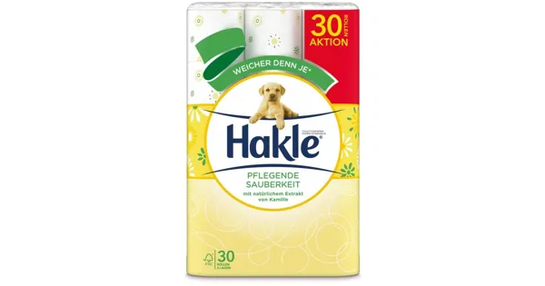 Die natürlich sanfte Variante von Hakle reinigt gründlich und pflegt dabei mit wertvollem Kamillenextrakt. Dank verbesserter Qualität, ist Hakle Kamille jetzt sogar noch weicher denn je zuvor! •...