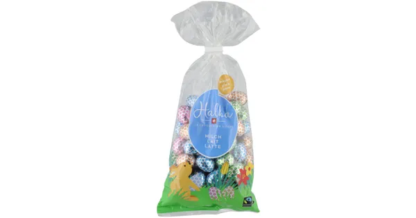 Schweizer Milchschokolade Die Halba Eili Milch massiv ist eine fein abgestimmte Milchschokolade, die angenehme Süsse und cremigen Schokoladengenuss vereint. Hergestellt ohne unnötige Zusätze, ist sie ideal für alle, die sich eine schlichte und hochwertige Schokoladenfreude gönnen möchten. Perfekt für kleine Genussmomente im Alltag. – Zutaten: Zucker, Kakaobutter, VOLLMILCHPULVER, Kakaomasse, MAGERMILCHPULVER, Emulgator (E 322 aus SOJA), natürliches Aroma. Kann Spuren von HASELNUSS, MANDELN enthalten. Kakao: 32% mindestens > Fairtrade-Zucker und -Kakao mit Mengenausgleich. Gesamtanteil: 77,7%. Mehr Info: www.maxhavelaar.ch/mengenausgleich. Zutaten: Zucker, Kakaobutter, VOLLMILCHPULVER, Kakaomasse, MAGERMILCHPULVER, Emulgator (E 322 aus SOJA), natürliches Aroma. Kann Spuren von HASELNUSS, MANDELN enthalten. Kakao: 32% mindestens > Fairtrade-Zucker und -Kakao mit Mengenausgleich. Gesamtanteil: 77,7%. Mehr Info: www.maxhavelaar.ch/mengenausgleich.