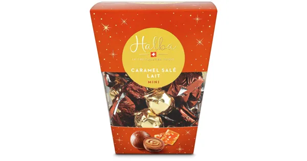 Schweizer Milchschokolade mit Karamellfüllung und Meersalz – Zutaten: Zucker, VOLLMILCHPULVER, Kakaobutter 21%, Kokosfett, Kakaomasse 4,5%, eingesottene BUTTER, karamellisierter Zucker 1,3%...