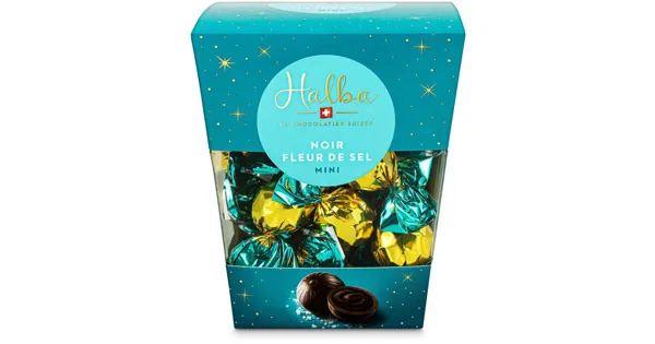 Dunkle Schweizer Schokolade mit Meersalz, gefüllt – Zutaten: Kakaomasse 36%, Zucker, Kokosfett, Kakaobutter 9%, Emulgator (E 322 aus SOJA), Meersalz "Fleur de Sel" 0,3%, natürliches Aroma, Vanilleschoten. Kann Spuren von HASELNUSS, MANDELN, MILCH enthalten. Zutaten: Kakaomasse 36%, Zucker, Kokosfett, Kakaobutter 9%, Emulgator (E 322 aus SOJA), Meersalz "Fleur de Sel" 0,3%, natürliches Aroma, Vanilleschoten. Kann Spuren von HASELNUSS, MANDELN, MILCH enthalten.
