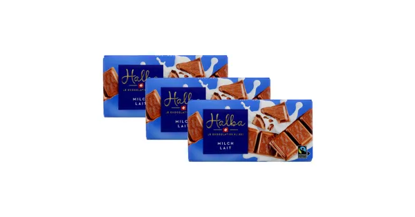 Schweizer Milchschokolade – Zutaten: Zucker, VOLLMILCHPULVER, Kakaobutter, Kakaomasse, HASELNÜSSE, Emulgator (E 322 aus SOJA), natürliches Aroma. Kann Spuren von MANDELN enthalten. Kakao: 31% mindestens > Fairtrade-Zucker und -Kakao mit Mengenausgleich. Gesamtanteil: 71,7%. Mehr Info: Fairtrade-Code1028815. www.maxhavelaar.ch/mengenausgleich. Zutaten: Zucker, VOLLMILCHPULVER, Kakaobutter, Kakaomasse, HASELNÜSSE, Emulgator (E 322 aus SOJA), natürliches Aroma. Kann Spuren von MANDELN enthalten. Kakao: 31% mindestens > Fairtrade-Zucker und -Kakao mit Mengenausgleich. Gesamtanteil: 71,7%. Mehr Info: Fairtrade-Code1028815. www.maxhavelaar.ch/mengenausgleich.