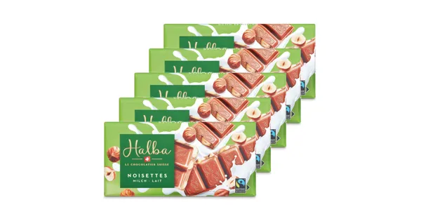 Schweizer Milchschokolade mit ganzen Haselnüssen Die Halba Tafelschokolade Milch & Nuss vereint cremige Milchschokolade mit knackigen Haselnussstücken und sorgt so für einen harmonischen...