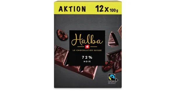 Dunkle Schweizer Schokolade – Zutaten: Kakaomasse, Zucker, Kakaobutter, natürliches Aroma. Kann Spuren von HASELNUSS, MANDELN, MILCH, SOJA enthalten. Kakao: 72% mindestens > Fairtrade-Kakao und -Zucker mit Mengenausgleich. Gesamtanteil: 99,9%. Mehr Info: Fairtrade-Code 1028803. www.fairtrademaxhavelaar.ch. Zutaten: Kakaomasse, Zucker, Kakaobutter, natürliches Aroma. Kann Spuren von HASELNUSS, MANDELN, MILCH, SOJA enthalten. Kakao: 72% mindestens > Fairtrade-Kakao und -Zucker mit Mengenausgleich. Gesamtanteil: 99,9%. Mehr Info: Fairtrade-Code 1028803. www.fairtrademaxhavelaar.ch.