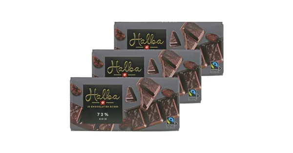 Dunkle Schweizer Schokolade – Zutaten: Kakaomasse, Zucker, Kakaobutter, natürliches Aroma. Kann Spuren von HASELNUSS, MANDELN, MILCH, SOJA enthalten. Kakao: 72% mindestens > Fairtrade-Kakao und -Zucker mit Mengenausgleich. Gesamtanteil: 99,9%. Mehr Info: Fairtrade-Code 1028803. www.fairtrademaxhavelaar.ch. Zutaten: Kakaomasse, Zucker, Kakaobutter, natürliches Aroma. Kann Spuren von HASELNUSS, MANDELN, MILCH, SOJA enthalten. Kakao: 72% mindestens > Fairtrade-Kakao und -Zucker mit Mengenausgleich. Gesamtanteil: 99,9%. Mehr Info: Fairtrade-Code 1028803. www.fairtrademaxhavelaar.ch.