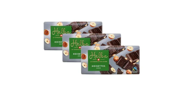 Dunkle Schweizer Schokolade mit ganzen Haselnüssen – Zutaten: Kakaomasse, Zucker, HASELNÜSSE 26%, Kakaobutter, eingesottene BUTTER, natürliches Aroma. Kann Spuren von MANDELN, SOJA enthalten. Kakao: 60% mindestens > Fairtrade-Kakao und -Zucker mit Mengenausgleich. Gesamtanteil: 72,4%. Mehr Info: Fairtrade-Code 1028839. www.fairtrademaxhavelaar.ch. Zutaten: Kakaomasse, Zucker, HASELNÜSSE 26%, Kakaobutter, eingesottene BUTTER, natürliches Aroma. Kann Spuren von MANDELN, SOJA enthalten. Kakao: 60% mindestens > Fairtrade-Kakao und -Zucker mit Mengenausgleich. Gesamtanteil: 72,4%. Mehr Info: Fairtrade-Code 1028839. www.fairtrademaxhavelaar.ch.