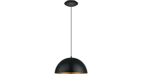 Verbessere dein Zuhause mit der eleganten Hängeleuchte Gaetano, die modernen Stil und aussergewöhnliche Funktionalität vereint. Mit ihrem modernen Design in zeitlosem Schwarz und einer edlen goldenen Innenseite bringt diese Hängeleuchte einen Hauch von Raffinesse in jeden Raum. Sie hat eine beeindruckende Grösse von 38 x 110 x 38 cm (B/H/T), wodurch sie sich ideal für Esszimmer, Wohnzimmer oder andere Wohnbereiche eignet, die eine stilvolle Beleuchtungslösung benötigen. Die Fassung (E27) bietet die Freiheit, ein Leuchtmittel nach Wahl bis zu 60 Watt zu verwenden, um die perfekte Lichtstimmung zu erzeugen. Bitte beachte, dass das Leuchtmittel nicht im Lieferumfang enthalten ist. Egal, ob du nach einer zentralen Lichtquelle suchst oder einen besonderen Akzent setzen möchtest – die nicht dimmbare Hängeleuchte Gaetano ist die perfekte Wahl. Bringe Luxus und Stil in dein Zuhause und geniesse die bewundernden Blicke der Gäste.
