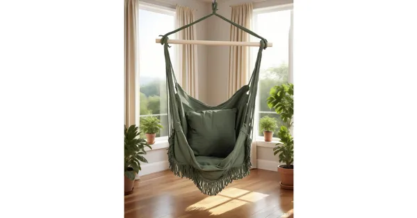 Verwandle deinen Wohnraum in eine entspannte Oase mit dem Hängesessel Juist in stilvollem Oliv. Perfekt für drinnen oder draussen – dieser Hängesessel bietet dir den ultimativen Komfort und lässt...