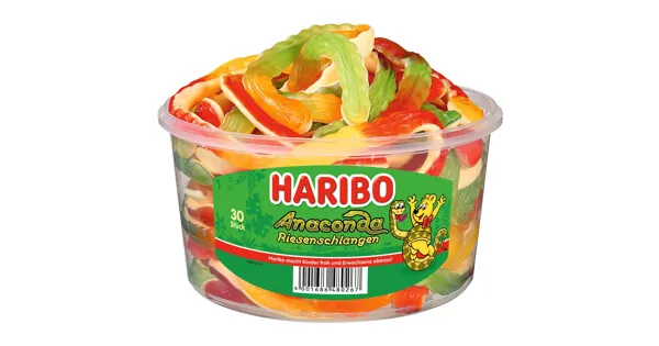 Für eine extra lange Nascherei ist diese Riesenschlange perfekt. Mit 35 cm Länge ist diese Haribo Riesenschlange wirklich XXL. In der Dose sind verschiedene Geschmacksrichtungen enthalten:...