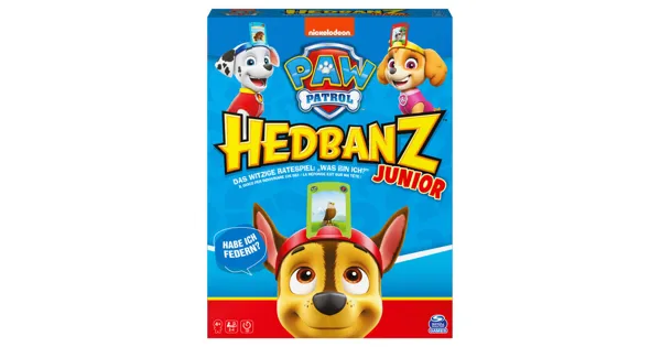 Hedbanz Junior - Paw Patrol: das lustige Rate- und Kommunikationsspiel - mit den Hunden der Paw Patrol. Jeder Spieler trägt ein Stirnband, an dem eine Karte befestigt ist, die er selbst nicht sehen...