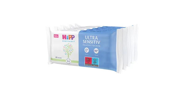 Feuchttücher Die HiPP ULTRA SENSITIV Feuchttücher sind besonders hautverträglich: Durch die milde Reinigungslotion mit 99% Wasser sind sie optimal für die sanfte Reinigung sensitiver und zu...