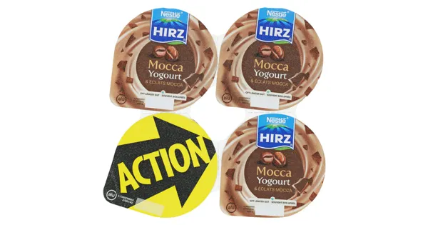 Teilentrahmtes Joghurt mild mit 2.5% Zubereitung aus coffeinfreien Kaffee-Extrakt-Splittern, (3.4% Fett im Milchanteil) – Zutaten: VOLLMILCH, Zucker, Wasser, MAGERMILCH, MILCHPROTEINE, Kakaobutter,...