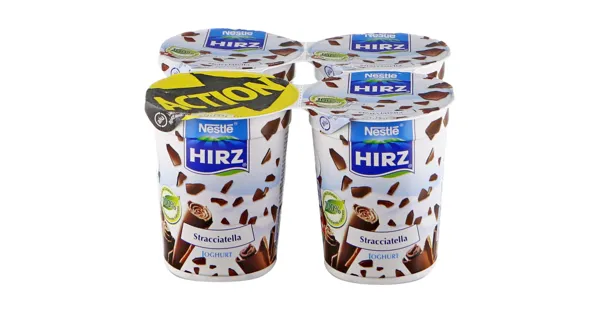 Joghurt mit Schokoladenstücken 4x180g. Nestle Hirz - Lust am Genuss Nestle Hirz - Genuss Garantie – Zutaten: VOLLMILCH, Zucker, MAGERMILCH, Wasser, MILCHPROTEINE, Schokoladestückchen 2%,...