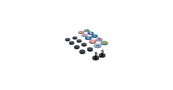 VerschiedeneModelle/Farben Magent mit Haken (2er Set) aus Eisen und Filzunterlage in schwarz/silber Edelstahl Magnet Set (8er Set): aus Edelstahl und Filzunterlage in silber/rosa/schwarz Transparentes Magnet Set (10er Set): aus PS Magnet Set mit Design: Epoxidharz