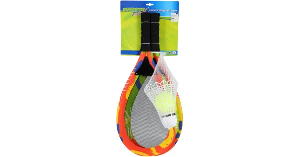 Bestehend aus zwei Schlägern mit Textilbespannung und Schaumstoffgriffen aus hochwertigem Material sowie einem Softtennisball und Federball. Bestehend aus zwei Schlägern mit Textilbespannung und Schaumstoffgriffen aus hochwertigem Material sowie einem Softtennisball und Federball.