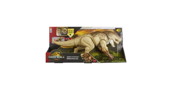 Mit dieser authentischen Distortus rex Doppelattacke-Actionfigur kommt der Nervenkitzel von Jurassic World: Die Wiedergeburt nach Hause. Das einschüchterndes Kopf-Rumpeln des Dinosauriers versetzt alle in Angst und Schrecken. Mit Brüllen und Zubeissen sowie einem mächtigen Armschwung beherrscht dieser fiese Dinosaurier gleich zwei furchterregende Angriffe! Dieser Distortus rex ist dank der beweglichen Gelenke und dem originalgetreuen Design bereit für jede Art von actionreichen Kämpfen und Posen. Durch Scannen des Tracking-Codes auf dem Fuss des Dinosauriers in der kostenlosen Jurassic World Play App mit einem kompatiblen Smart-Gerät (Android oder iOS, nicht enthalten) werden eine digitale Version des Dinosauriers sowie ein lustiges Spiel freigeschaltet, bei dem man mit verschiedenen Fahrzeugen an Land, in der Luft und im Wasser Rennen fährt. Tolles Geschenk für Dinosaurierfans ab 4 Jahren. Abweichungen in Farbe und Gestaltung vorbehalten.