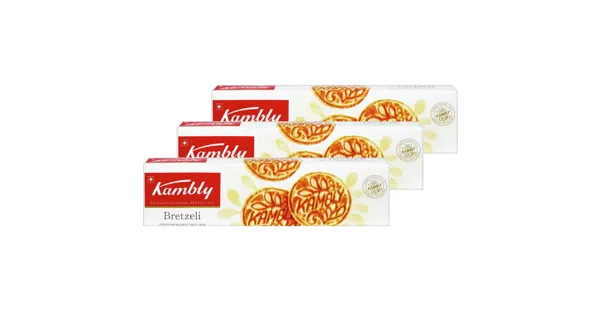 Kambly Bretzeli. Kambly - Excellence Suisse depuis 1910. 3x115g – Zutaten: WEIZENMEHL, Zucker, Kokosfett, EIER, BUTTER, Salz, Backtriebmittel (Natriumcarbonate), natürliches Zitronenaroma. Kann Spuren von SCHALENFRÜCHTEN enthalten. Zutaten: WEIZENMEHL, Zucker, Kokosfett, EIER, BUTTER, Salz, Backtriebmittel (Natriumcarbonate), natürliches Zitronenaroma. Kann Spuren von SCHALENFRÜCHTEN enthalten.