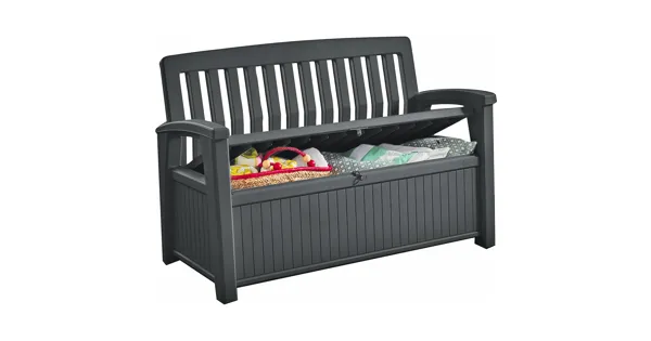 Nicht nur eine bequeme Sitzgelegenheit, die Gartenbank Patio ist auch die ideale Aufbewahrungsmöglichkeit für Ihre Gartenutensilien.