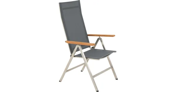 Der Klappstuhl Fabian in elegantem Grau könnte dein neuer Lieblingsplatz werden. Seine hochwertige Mischung aus robustem Edelstahlgestell und warmen Teakholz-Armlehnen aus Brasilien bringt Stil und Langlebigkeit in deinen Aussenbereich. Stell dir vor, du lehnst dich entspannt zurück – die mehrfach verstellbare Rückenlehne macht es ganz leicht möglich. Und mit einer Belastbarkeit bis zu 120 kg und einer komfortablen Sitzhöhe von 45 cm ist der Stuhl für alle Anlässe geeignet. Der Sommer kann kommen!