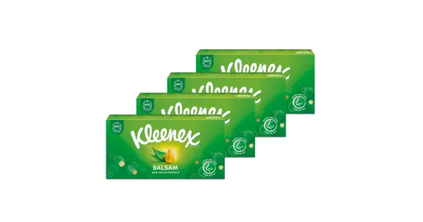 Wenn wir uns unwohl fühlen, brauchen wir ein Taschentuch, dem wir vertrauen können. Kleenex® Balsam* Taschentücher hinterlassen einen pflegenden Balsam, der besonders lindernd wirkt*- selbst bei stärkster Erkältung (*verglichen mit Kleenex® Original Taschentüchern). Kleenex® Balsam Taschentücher enthalten Aloe Vera, Vitamin E und Calendula und hinterlassen einen pflegenden Balsam, der Ihre Nase beruhigt. Kleenex® Balsam Taschentücher sind dermatologisch getestet für empfindliche Haut. Damit Sie bei der nächsten laufenden Nase wissen, wonach Sie greifen müssen.