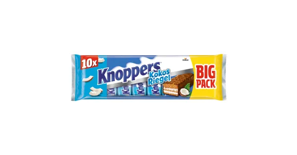 Diese leckeren Kokosriegel von Knoppers sind mit zarzter Nougatcreme und Schokolade überzogen. Sie passen perfekt für Zwischendurch und geben einen Energieschub. Ausserdem enthalten sie Kokosflocken und geröstete Nüsse.