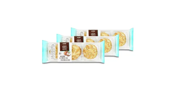 Dauerbackware Dauerbackware. 180g. – Zutaten: Kokosnussraspeln 39%, Zucker, Wasser, Feuchthaltemittel (E 420), EIWEISSPULVER*, Invertzuckersirup, modifizierte Kartoffelstärke (E1412), Weissmehl...