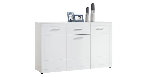 Die Kommode Atlantis begeistert Liebhaber des modernen und schlichten Designs auf den ersten Blick. Die Glasablage auf dem Oberboden der Kommode verleiht dem Möbelstück eine besondere Ausstrahlung. Mit einigen Accessoires auf der grossen Oberfläche wird die Kommode zum Kunstobjekt in Ihren eigenen vier Wänden. Genügend Stauraum verbirgt sich hinter den drei Türen und der Schublade. Holen Sie sich einen geschmackvollen Look ins Haus mit der Kommode Atlantis.