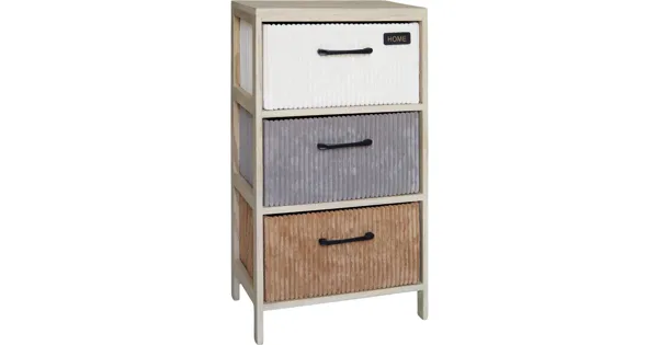 Dank ihrer schlanken Form passt die Kommode Cord perfekt in den Eingangsbereich, den Flur und kleine Räume. Sie verfügt über drei Schubladen mit Metallgriffen. Die verschiedenen Farben der Schubladen machen dieses Möbelstück zu etwas ganz Besonderem. In den Schubladen finden vor allem kleine Dinge ihren Platz. Seien es Mützen, Handschuhe, Schmuck etc. Die Kommode schafft Ordnung und hilft dir, den Überblick zu behalten. Zudem ist sie ein tolles Möbelstück, um Wärme und Farbe in dein Zuhause zu bringen.