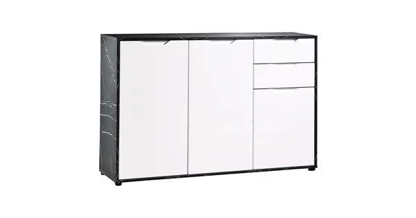 Die edle Marmor-Optik in Kombination mit Weiss Hochglanz verleihen der Kommode Korfu einen hochwertigen Charakter. Mit ihrer Grösse bietet die Kommode hinter den drei Türen und in den zwei...