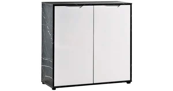 Die edle Marmor-Optik und die weisse Front in Hochglanz verleihen der Kommode Korfu einen hochwertigen Charakter. Hinter den beiden Drehtüren findest du genügend Stauraum zum Versorgen deiner...