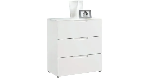 Die Kommode Mailand wirkt mit ihrer Front aus Hochglanz hochwertig und nobel. Das Korpus ist in Weiss gehalten und die Fläche oben ist mit einer Milchglasplatte veredelt. Die dezenten Griffmulden machen den modernen Look komplett. Die Kommode verfügt über drei grosszügige Schubladen, die viel Stauraum bieten. Ein tolles Möbelstück, das sehr dezent ist und doch meisterhaft elegant den Raum schmückt.