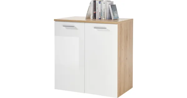 Die Kommode Paul überzeugt durch ihren modernen Look. Paul bietet hinter den zwei Türen viel Platz für Ihre Bücher und weitere Accessoires. Die Kombination aus dem Dekor Eiche Artisan und dem Korpus in Hochglanz weiss verleihen Ihrer Wohnung eine gemütliche und wohlfühlende Atmosphäre.