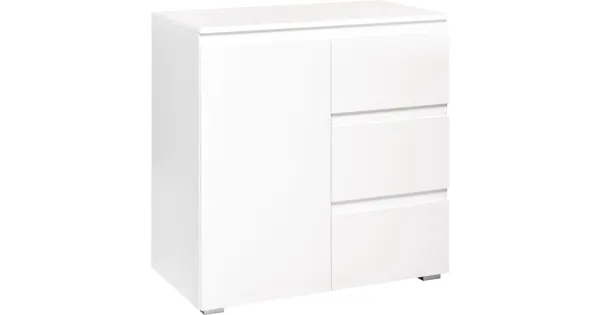 Kommode SharkSchaffen Sie sich ein gemütliches Raumklima mit der stilvollen Kommode Shark. Hinter einer Türe und drei Schubladen lassen sich wichtige und private Gegenstände vor neugierigen Blicken schützen. Der zusätzliche Einlegeboden, welcher sich hinter der Türe befindet, sorgt für weitere Nutzfläche. Dank der geradlinigen Formensprache lässt sich die edle Kommode leicht mit verschiedenen Wohneinrichtung kombinieren.