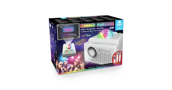 Der iDance Karaoke Beamer macht jedes Wohnzimmer zur Bühne! Verbinde einfach dein Handy, projiziere Karaoke-Songs auf eine weisse Wand oder Leinwand und geniesse dazu das coole Discolicht. Karaoke-Feeling pur – überall und jederzeit.