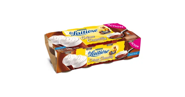 Milchdessert mit Schokolade Nestlé La Latière Viennois Schokolade. – Zutaten: VOLLMILCH (34,2%), BUTTERMILCH, RAHM (13,3%), Zucker, Wasser, Schokolade (3,5%) , modifizierte Maisstärke,...