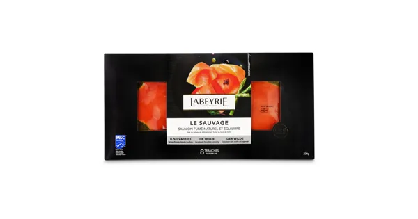 Rauchlachs (Oncohynchus kisutch / /Oncorhynchus nerka) – Zutaten: COHOLACHS (Oncorhynchus kisutch) (C) / ROTLACHS (Oncorhynchus nerka) (S) (gefangen im Nordostpazifik mit Kiemennetze und vergleichbare Netze, Umschliessungsnetze und Hebenetze, Haken und Langleinen), Salz. Zutaten: COHOLACHS (Oncorhynchus kisutch) (C) / ROTLACHS (Oncorhynchus nerka) (S) (gefangen im Nordostpazifik mit Kiemennetze und vergleichbare Netze, Umschliessungsnetze und Hebenetze, Haken und Langleinen), Salz.