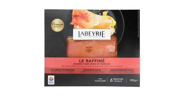 Rauchlachs (Salmo salar) – Zutaten: LACHSFILET (Salmo salar, in Aquakultur gewonnen in Grossbritannien ), Salz. Zutaten: LACHSFILET (Salmo salar, in Aquakultur gewonnen in Grossbritannien ), Salz.
