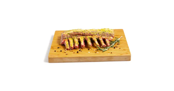 Lammracks, mariniert – Zutaten: Lammfleisch (Herkunft Irland / Grossbritannien), pflanzliche Öle (Raps, Raps gehärtet), Knoblauch, Kochsalz jodiert, Gewürze, Würze, Gewürzextrakt. Nicht für den Rohverzehr geeignet. Zutaten: Lammfleisch (Herkunft Irland / Grossbritannien), pflanzliche Öle (Raps, Raps gehärtet), Knoblauch, Kochsalz jodiert, Gewürze, Würze, Gewürzextrakt. Nicht für den Rohverzehr geeignet.