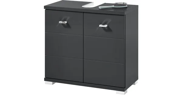 Verstaue deine Handtücher, Pflegeprodukte oder jegliches Badzubehör in unserem modernen Lavaboy Loop. Die zeitgemässe Kombination aus Betonoptik und Hochglanz macht das Möbel zum Hingucker im Badezimmer. Der Badunterschrank mit zwei Türen und silbernen Griffen bietet reichlich Stauraum. Unser Lavaboy Loop in Grau ist das passende Ergänzungsstück zum gleichfarbigen Badhochschrank Loop. Die Badserie Loop ist insgesamt in vier verschiedenen Ausführungen erhältlich.